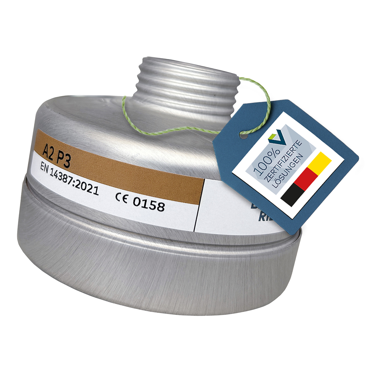 Der BR A2P3 Kombinationsfilter ist ein Schraubfilter entsprechend EN 14387 A2P3 RD, mit Rundgewindeanschluss nach EN 148-1, zum Schutz gegen organische Gase und Dämpfe mit Siedepunkt > 65 °C, bei gleichzeitig auftretenden Partikeln von giftigen und hochgiftigen Stoffen.